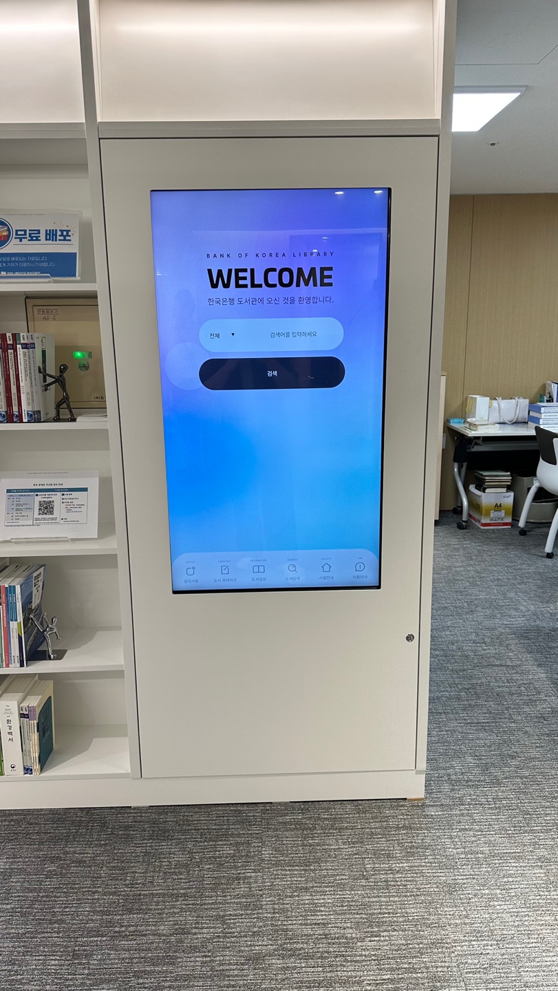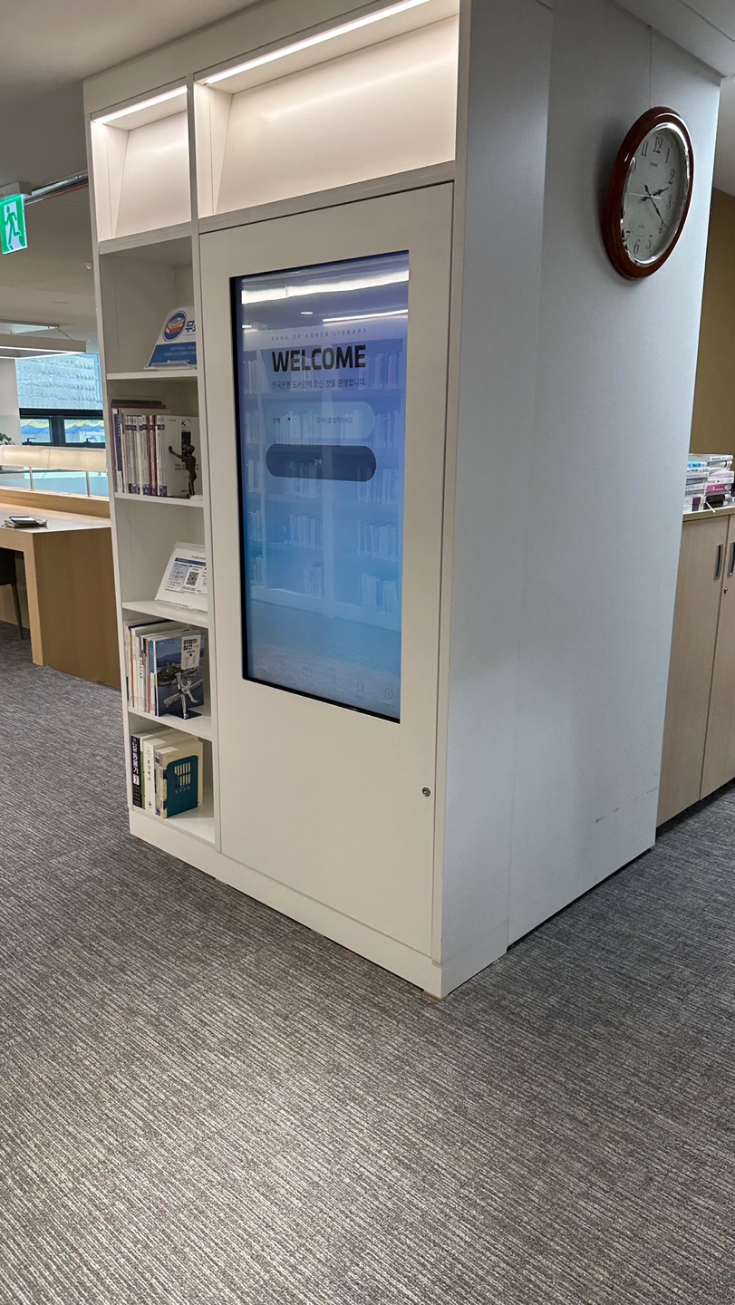 서울시 중구 한국은행 본관 도서관에 AI 도서추천 및 큐레이션을 위한 DID 키오스크를 구축하였습니다.