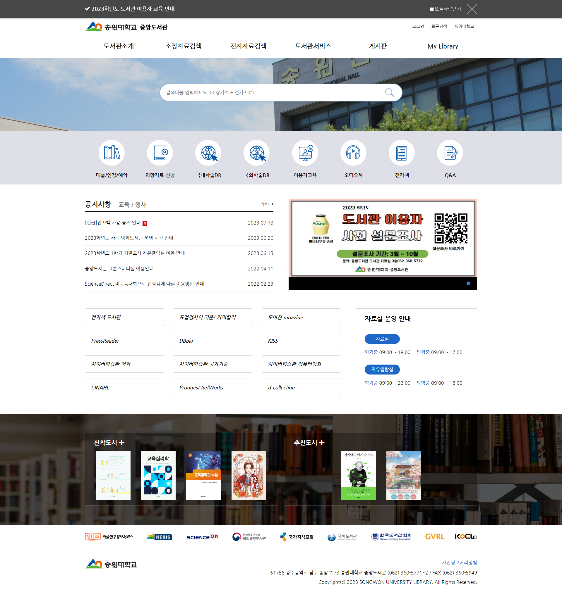 송원대학교에 사이버학습관 서비스를 위한 종합서비스 시스템을 구축하였습니다.