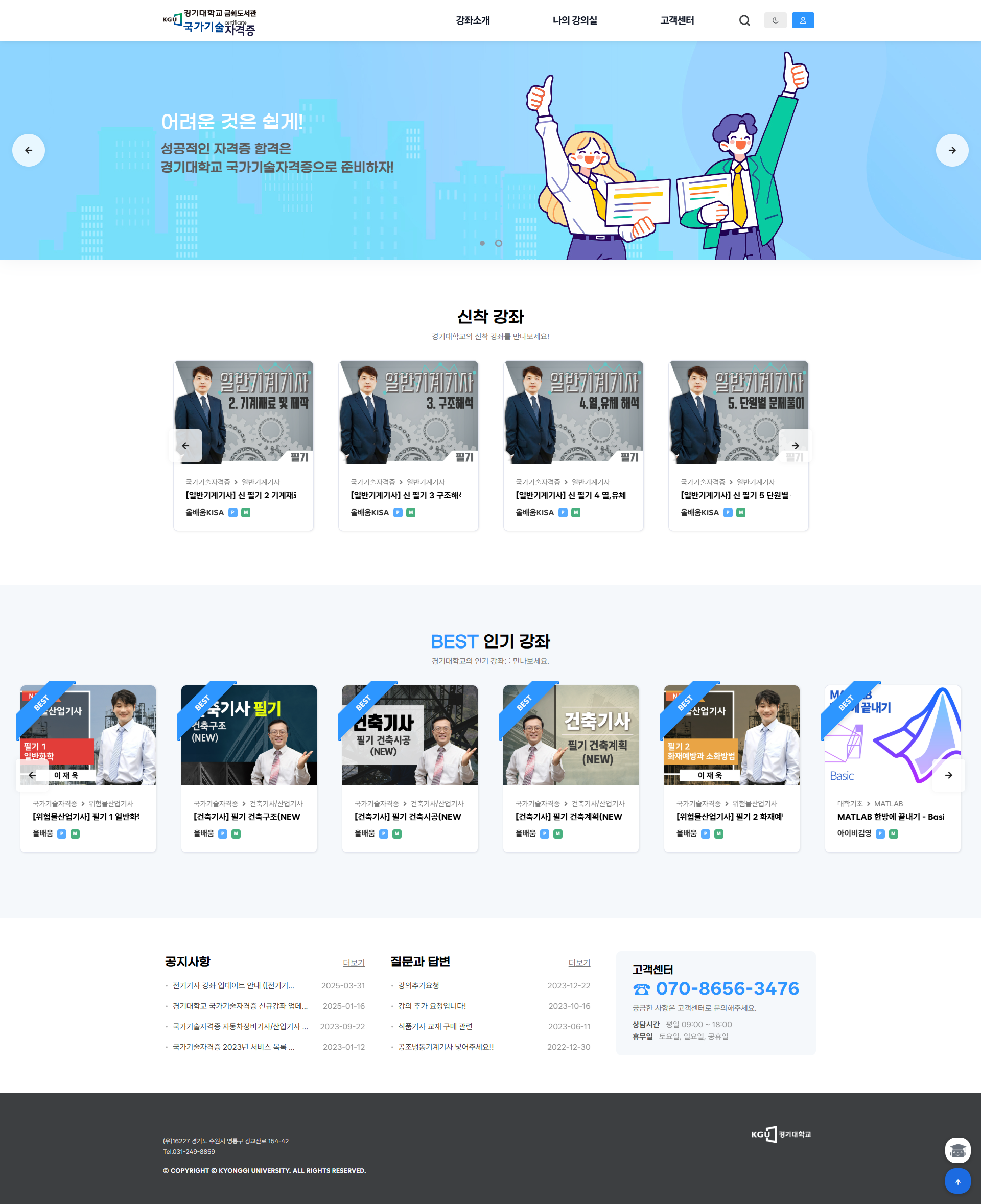 - 국가기술자격증 : 산업안전기사, 건설안전기사, 전기기사, 무선설비기사, 일반기계기사 등 영상 서비스