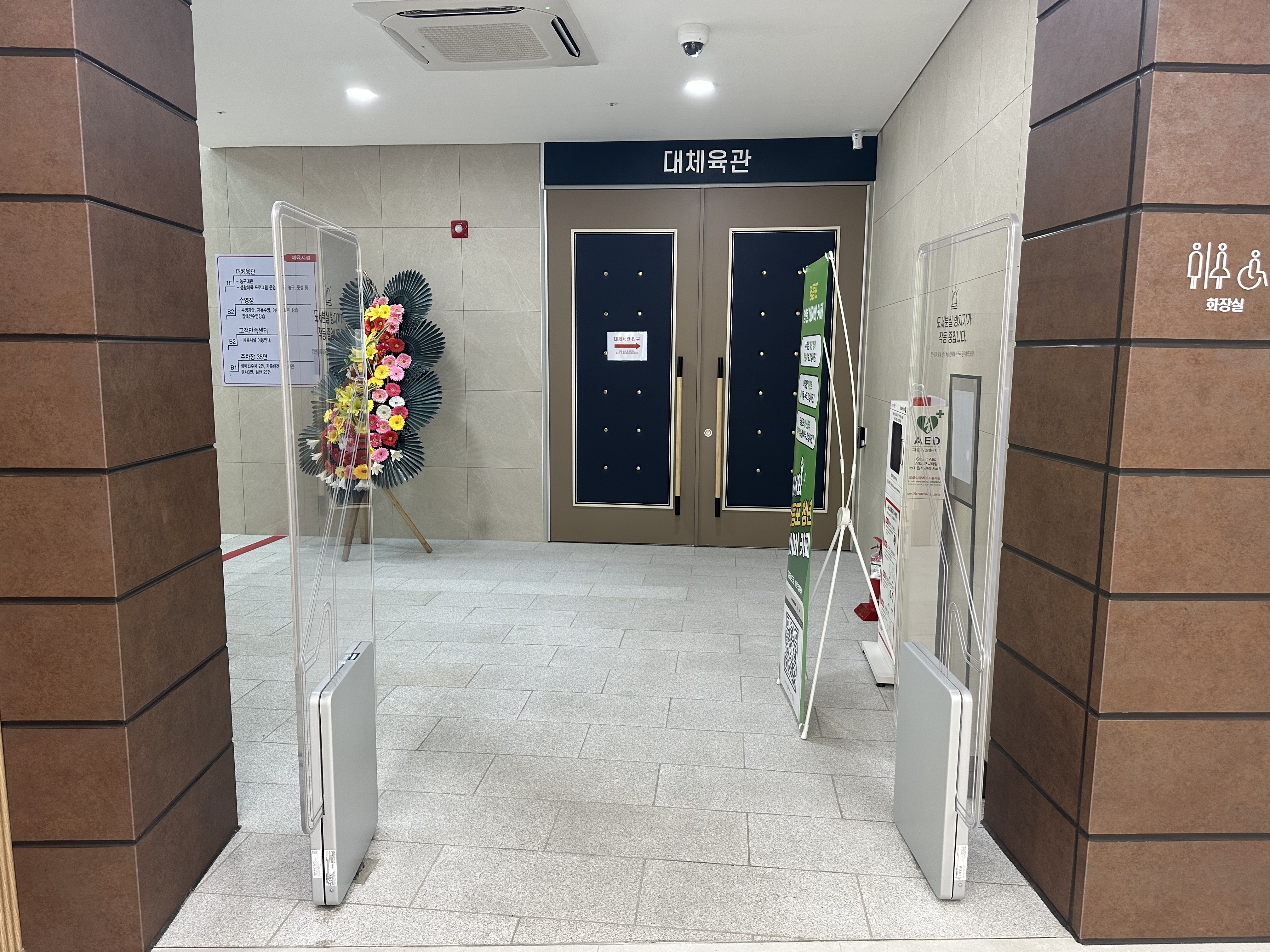 1) 1층 정문, 후문 앞으로 BF 규격에 맞게 각 1대 구축