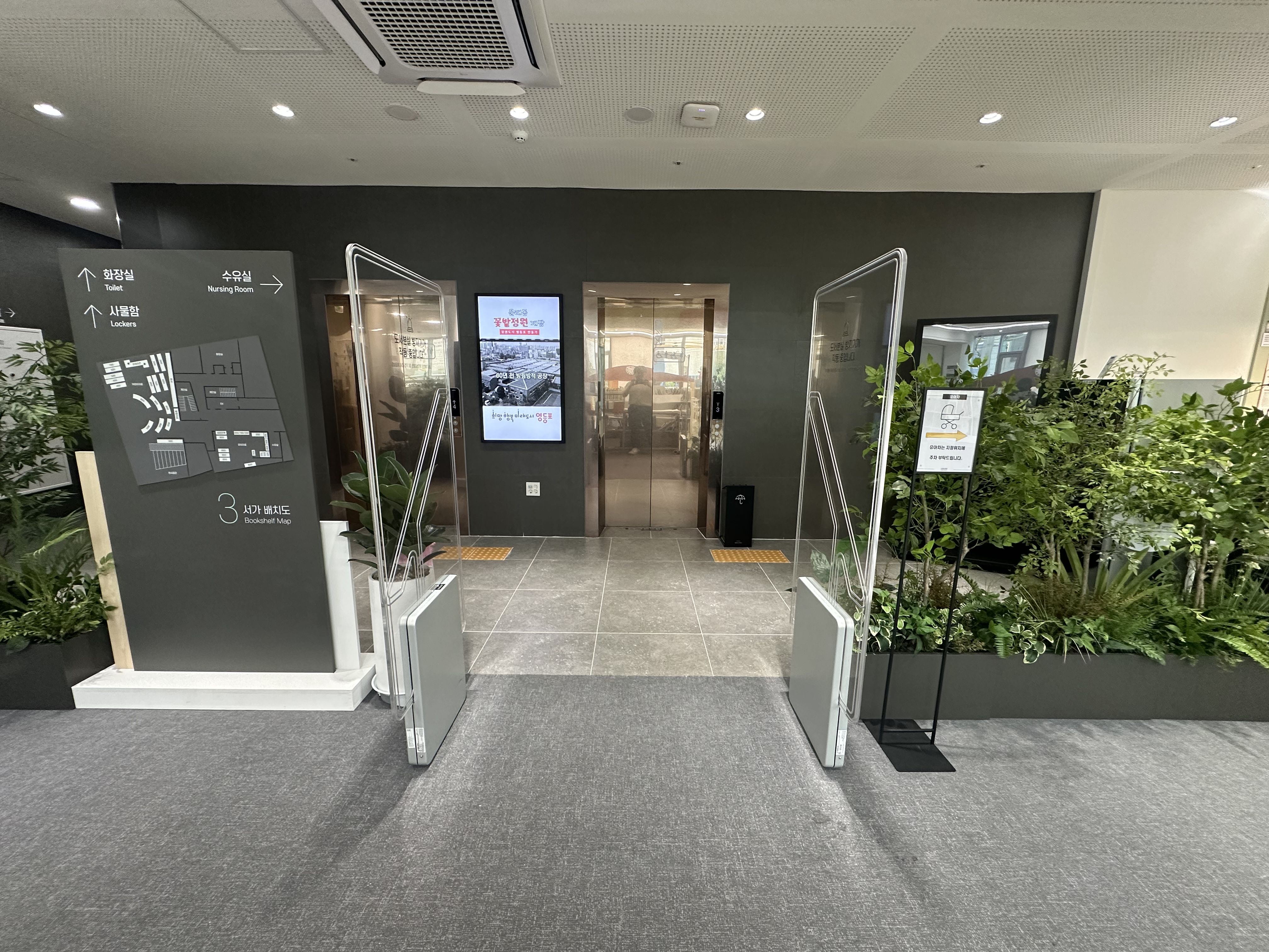 2) 3층 유아자료실, 4층 일반자료실 : 입구로 BF 규격에 맞게 각 1대 구축