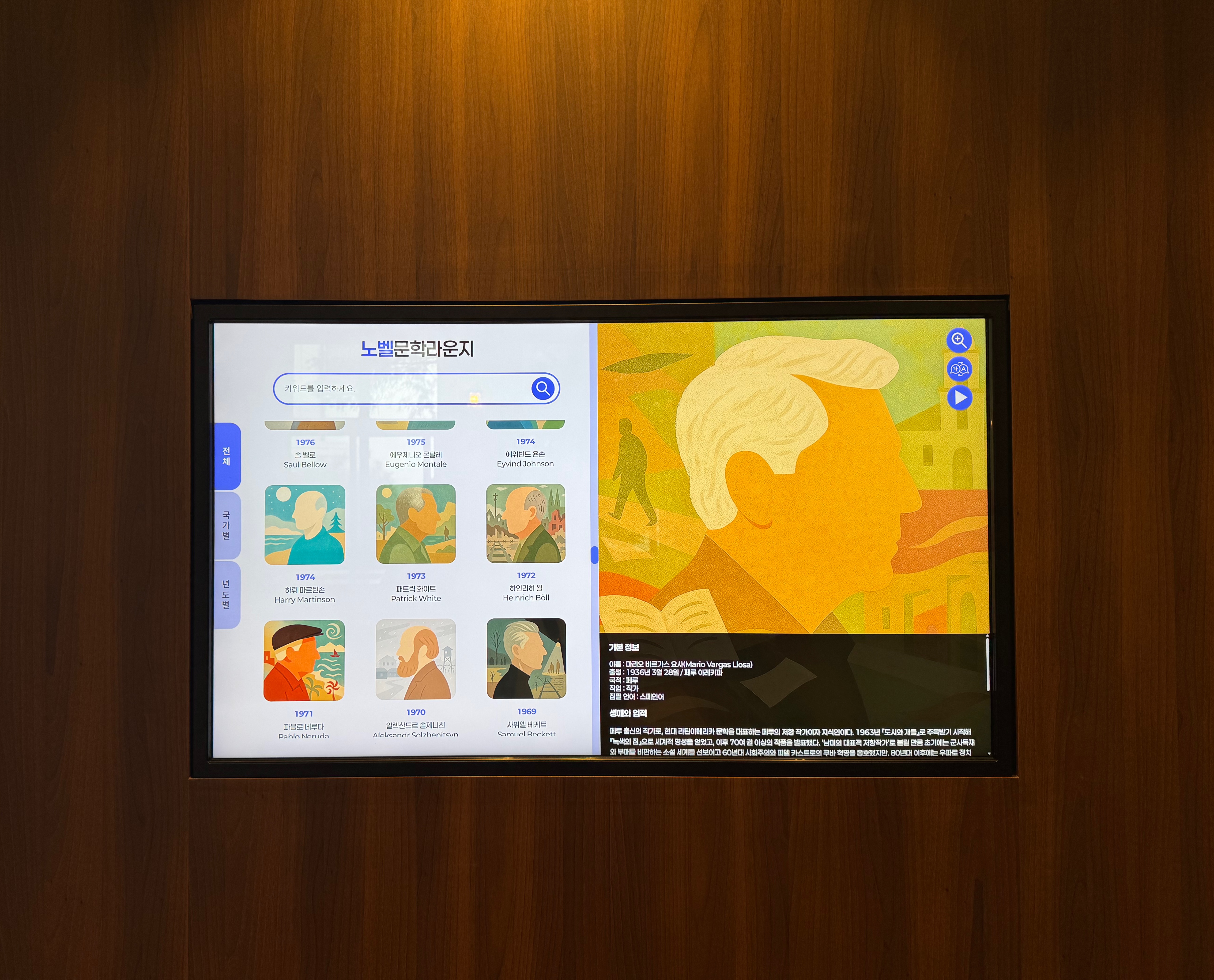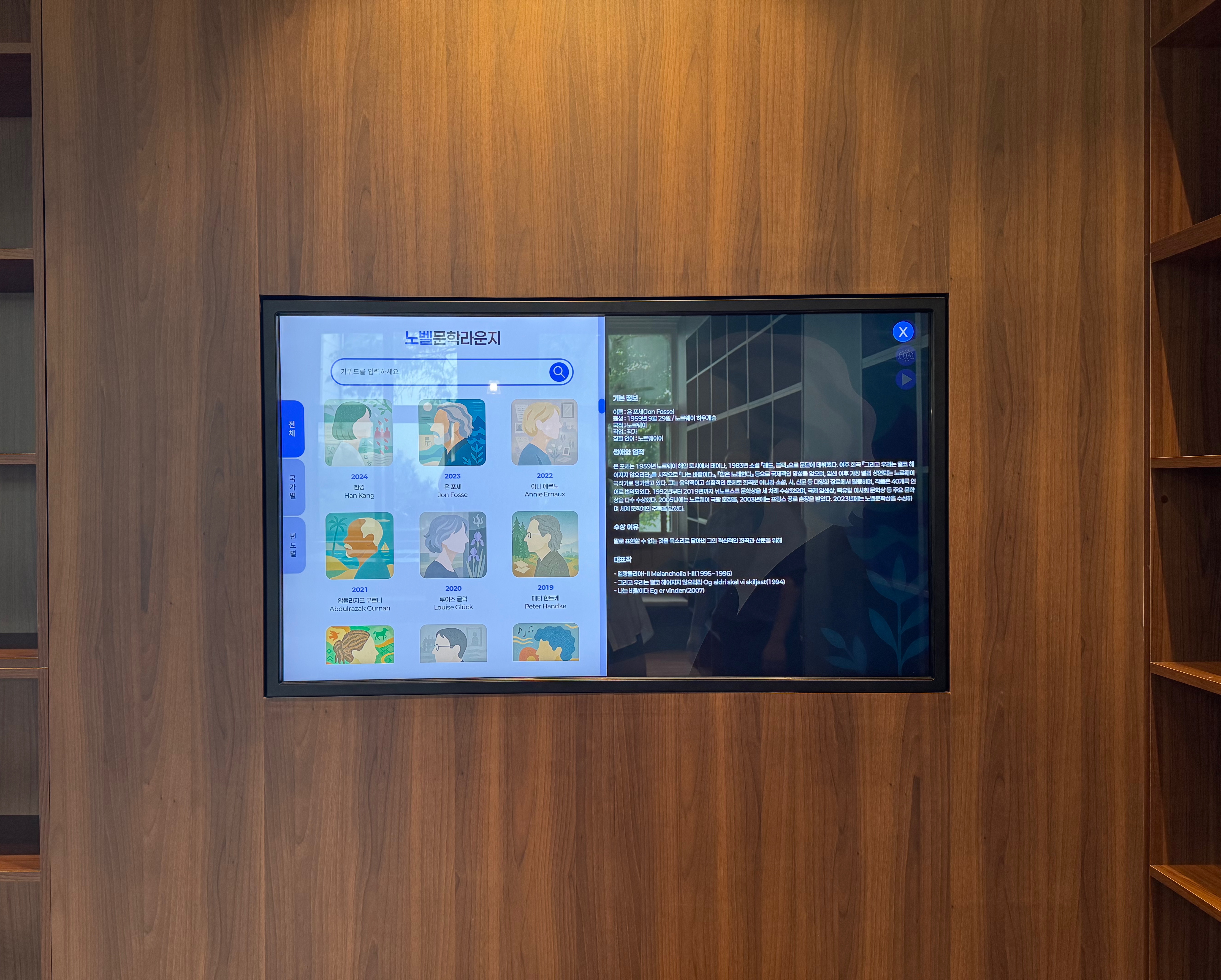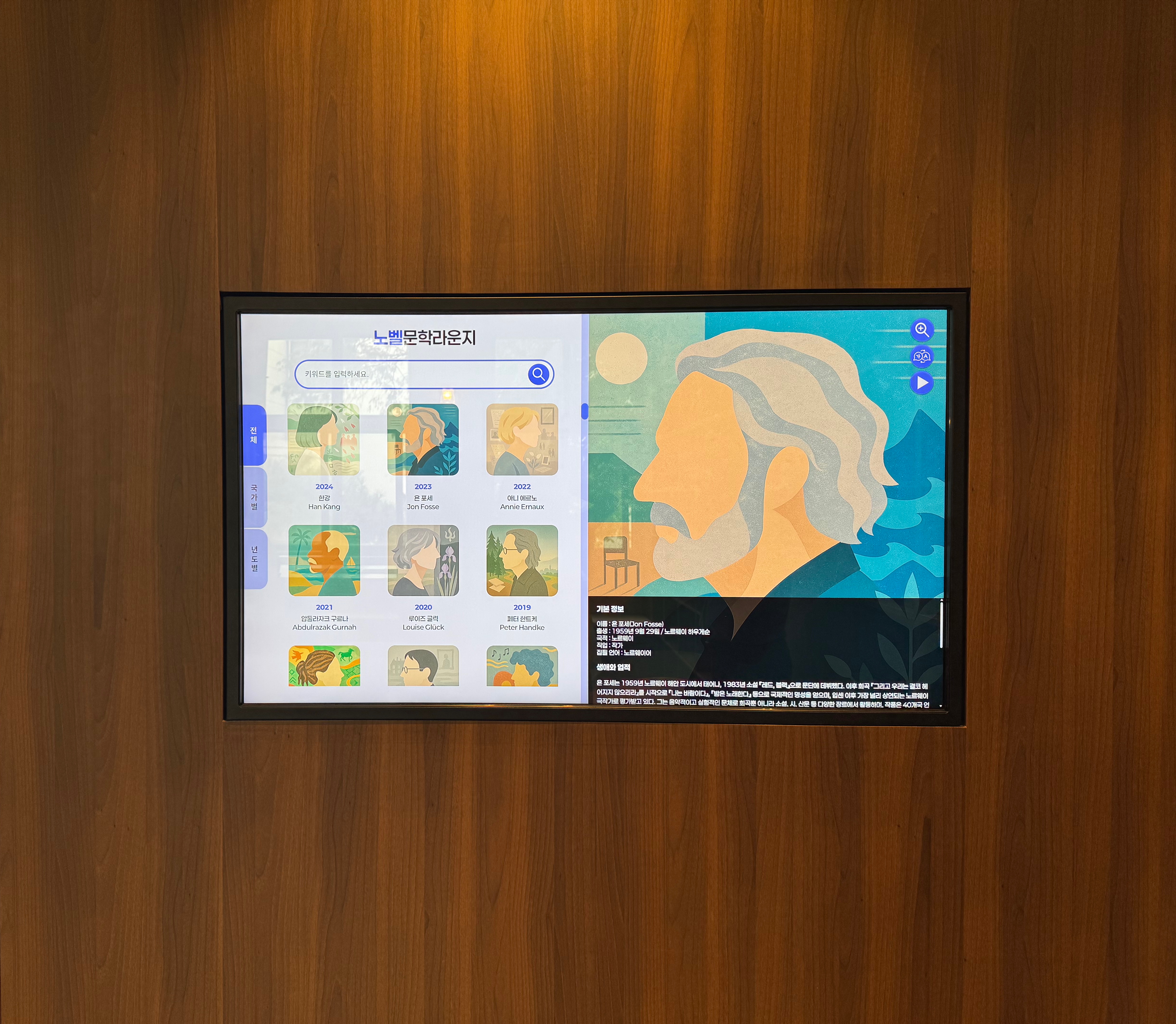 서울시교육청정독도서관에 노벨문학라운지 시스템을 개발 구축하였습니다.