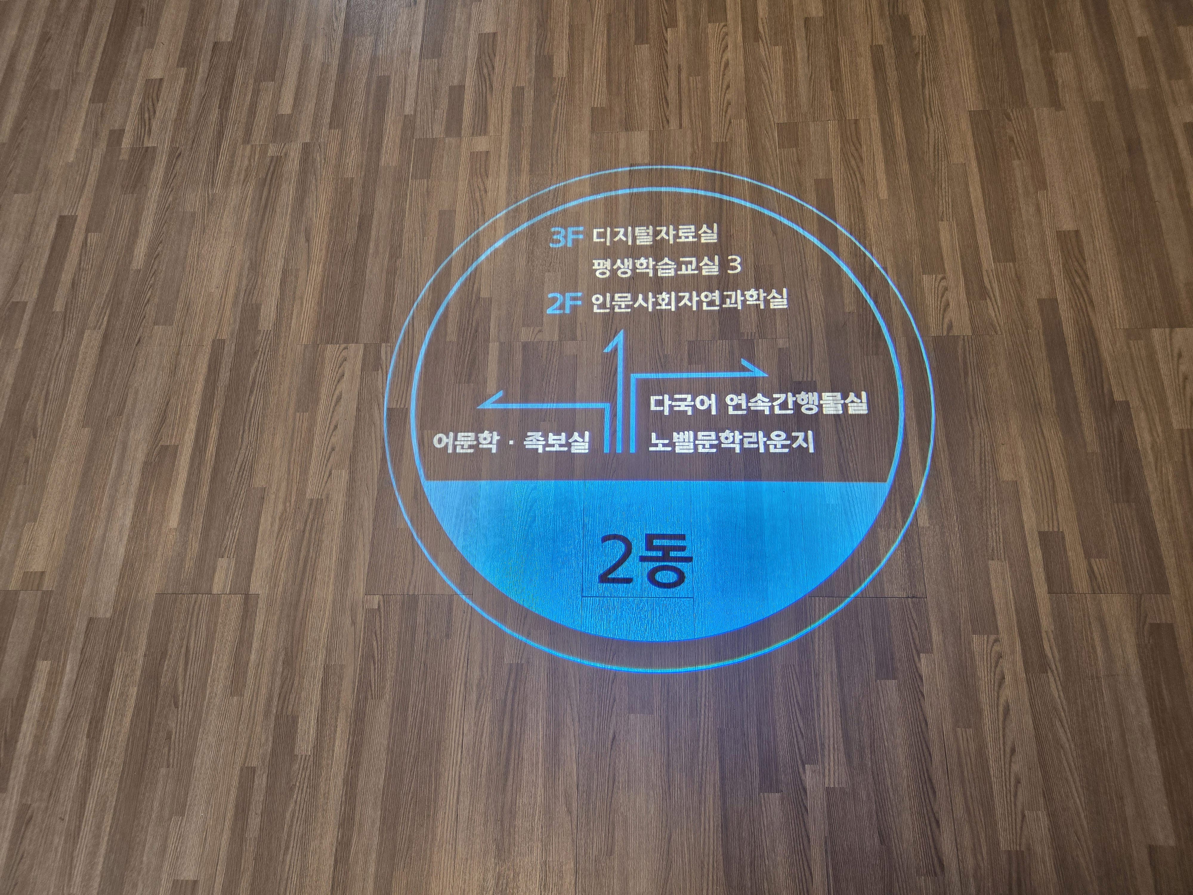 아울러 복도에 로고빔을 설치하여 실별 위치 안내가 가능하도록 구축하였습니다.